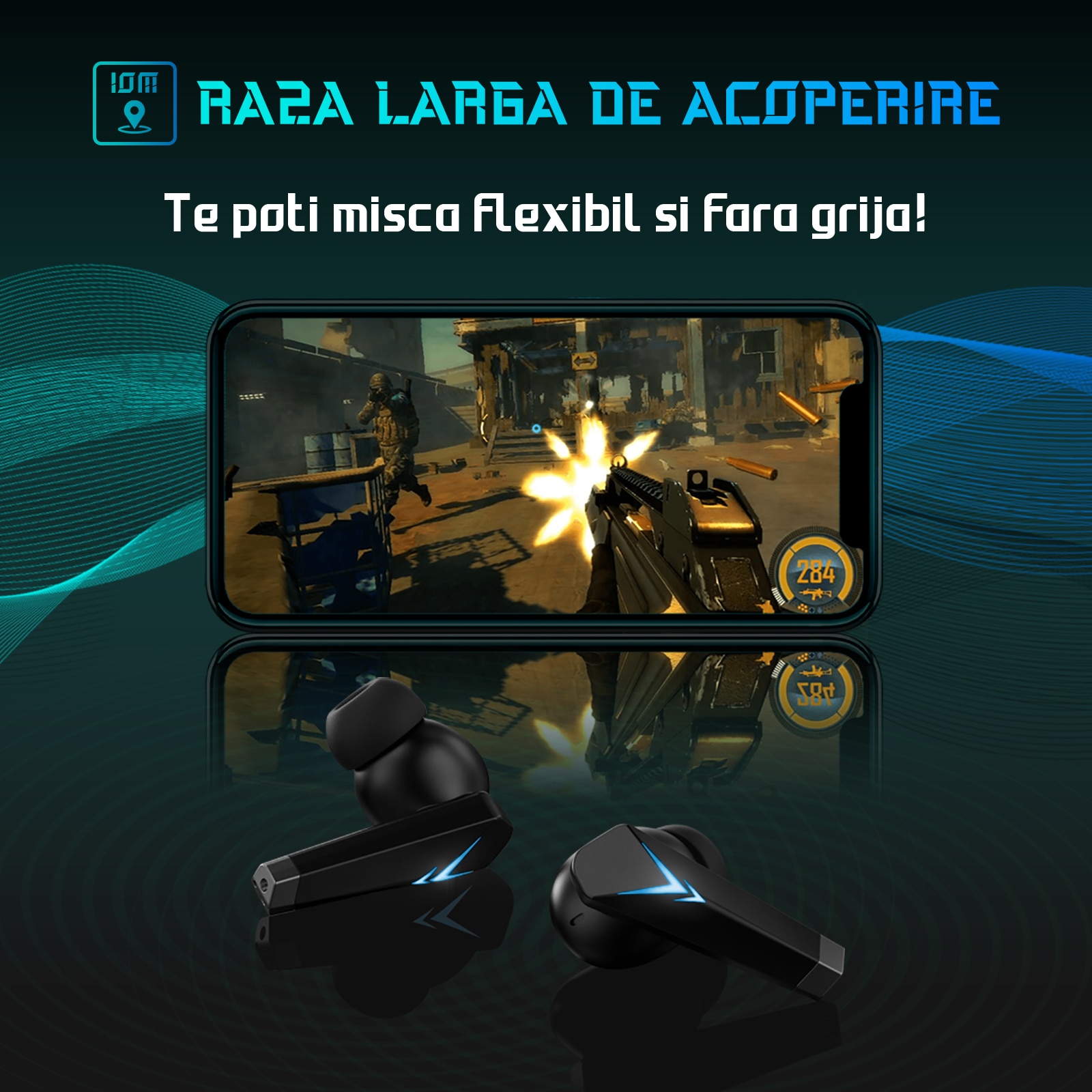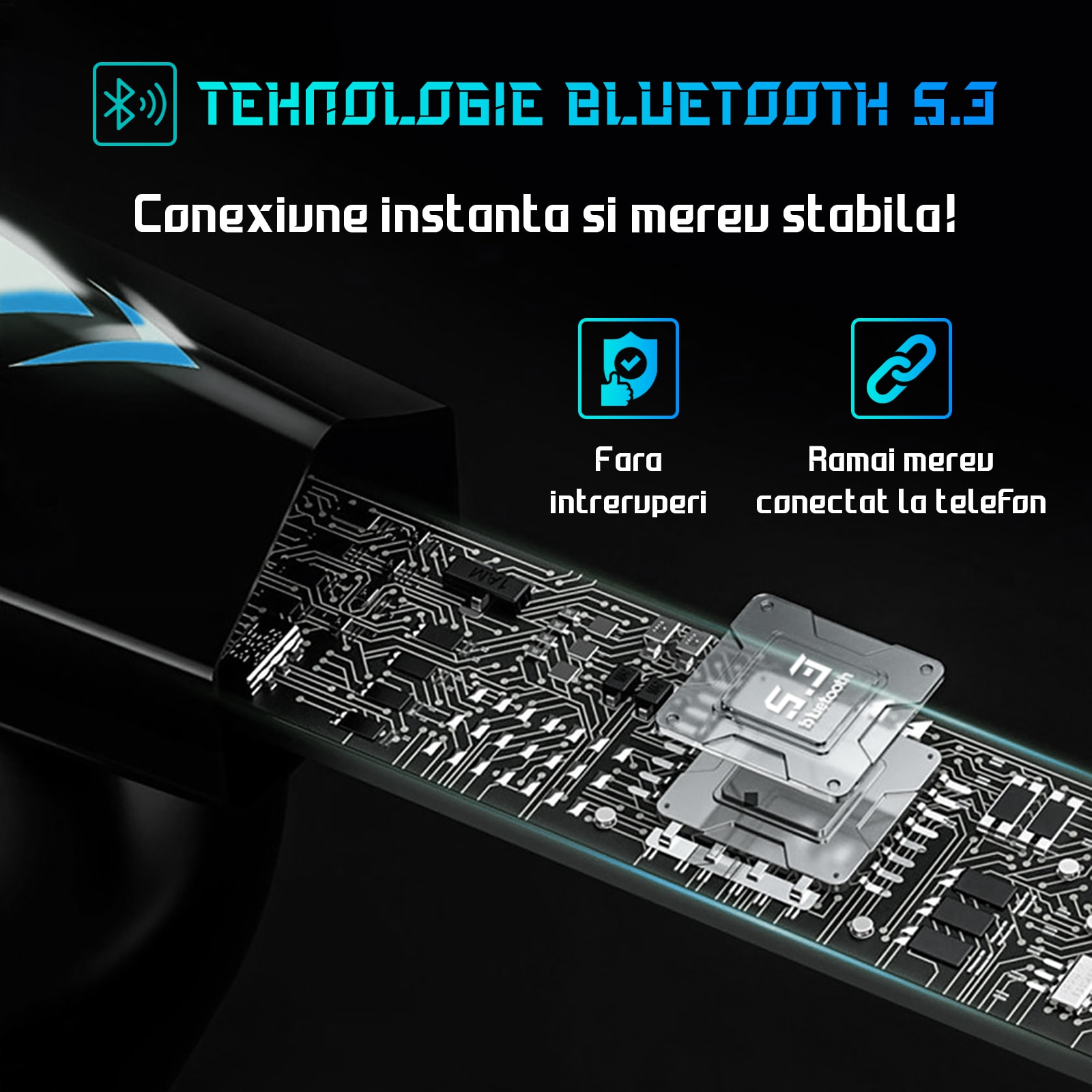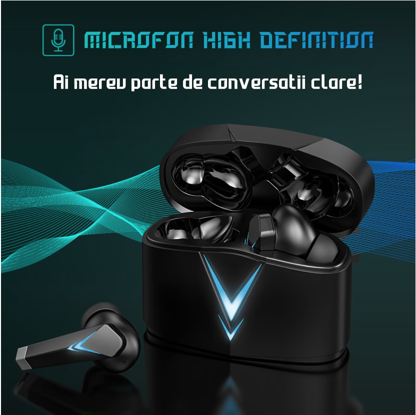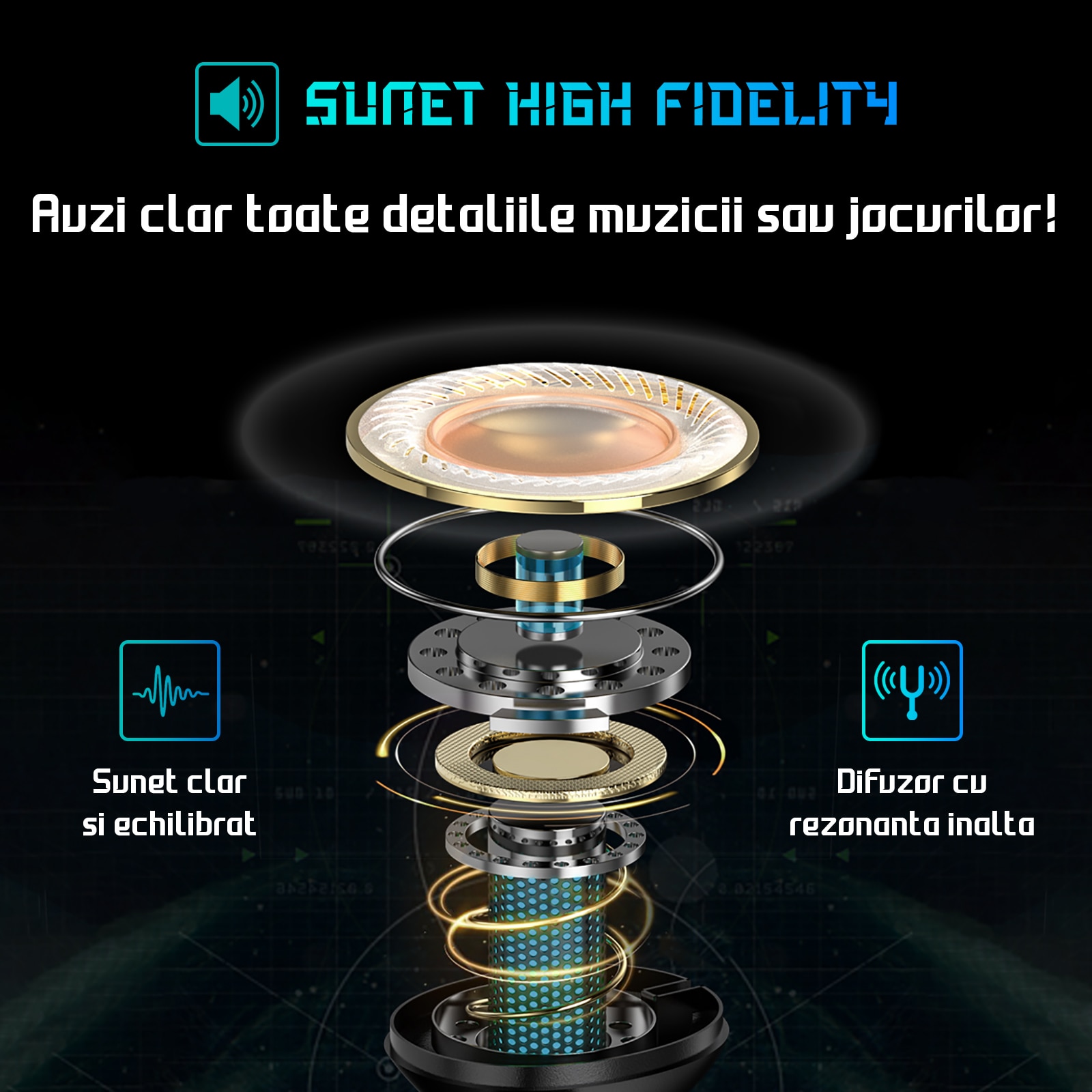 Casti Wireless Bluetooth 5.3 Gaming, SHARP PRO, audio, Earbuds in-Ear, fara fir, cu microfon, Control Touch, Asistent vocal, pentru telefon, Universale.