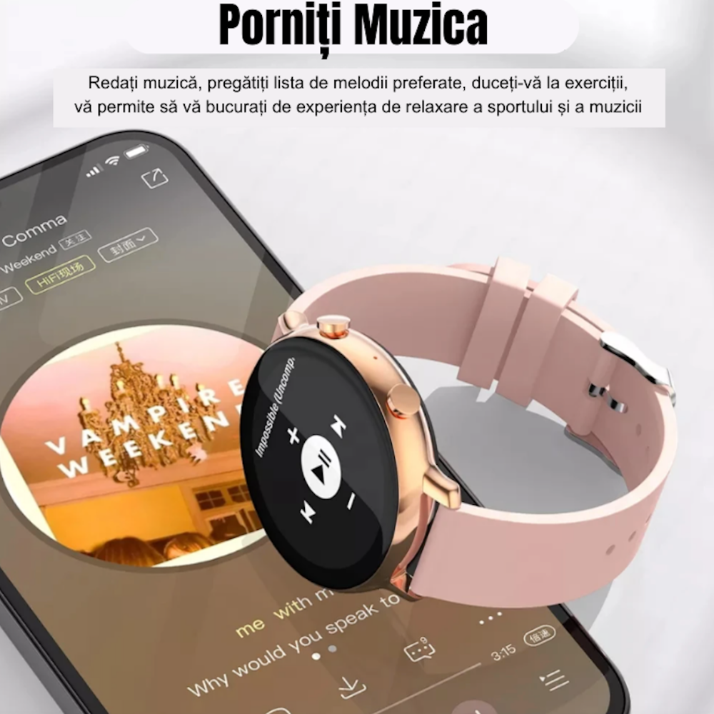 Ceas SmartWatch DT™ iFit, Apelare Bluetooth HD, 1.30″ Borderless 4D, Acces Control, GPS Route tracking, AI Asistent Vocal, ECG, 24/7 Fitness Tracker, Curea Metalica si Silicon, Folii Protectie, Refined Gold