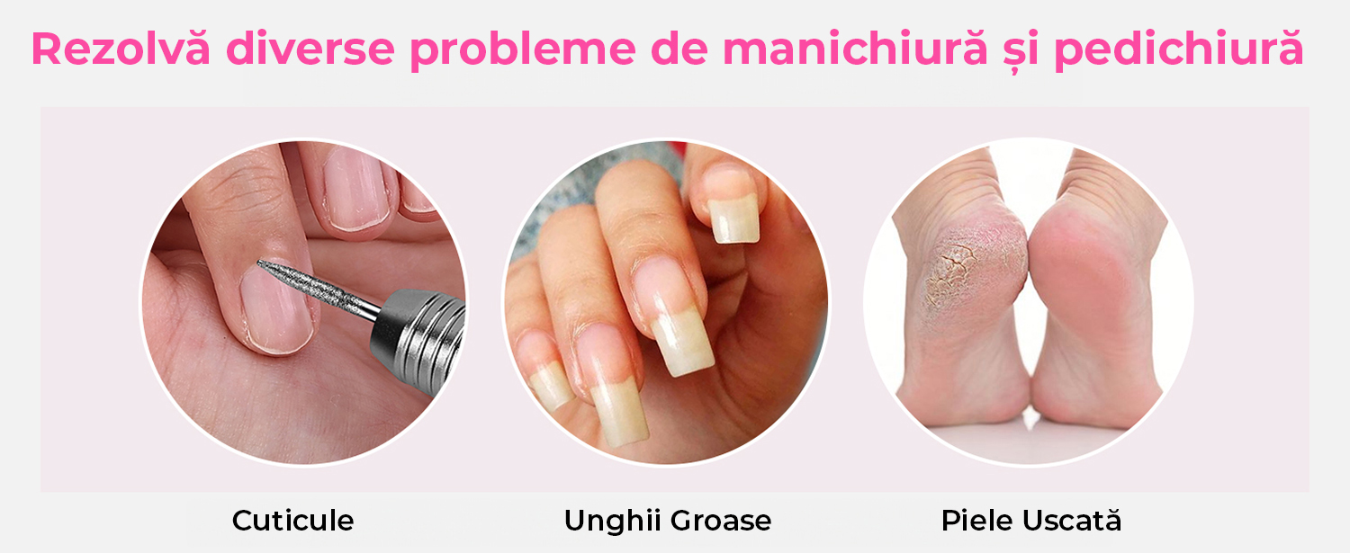 Multifunctionala: Vine echipata cu un motor rotativ puternic de 25.000RPM si 11 tipuri de freze metalice de 3/32”, acesta pila electrica pentru unghii poate fi folosita pentru modelare, slefuire, polizare, indepartarea unghiilor false de acril, gel sau pulbere, indepartarea cuticulelor si a pielii moarte.