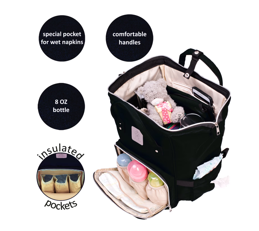 Geanta-Rucsac pentru Bebelusi, Copii si Mamici, Geanta Dama de Umar/Carucior – Travel Organizer set cu Changing Pad – 45 x 28 x 21 cm , NEGRU