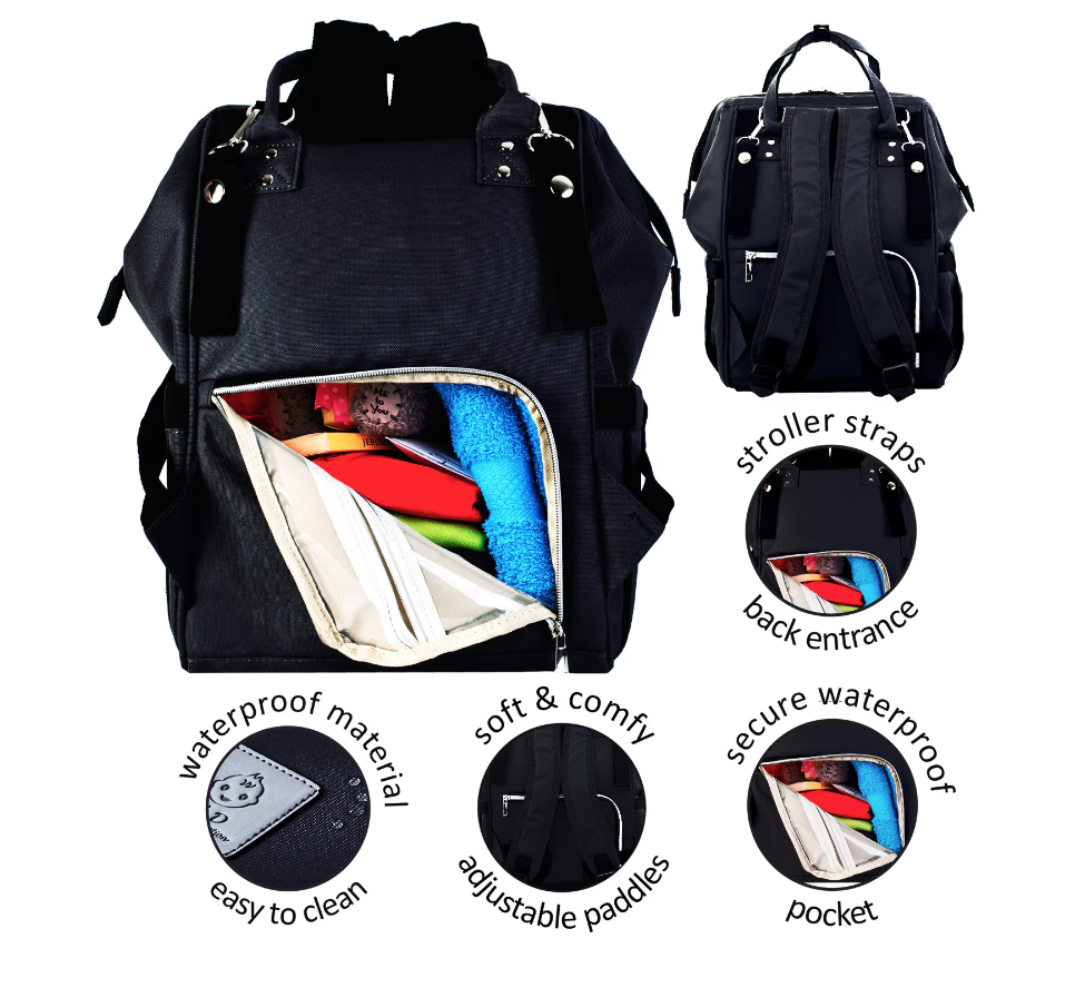 Ca si parinte cu copil mic, trebuie sa cari foarte multe lucruri pentru ingrijirea copilului, acest lucru creaza mari probleme, pentru ca parca niciodata nu ai suficiente genti sa le umpli sau spatiu sa le cari. De aceea , am creat un rucsac pentru depozitarea tuturor produselor necesare ingrijiri copilui tau. Acest rucsac are avantajul de a fi multifunctional, cu o capacitate de depozitare mare, un design trendy , durabil si de o calitate superioara .