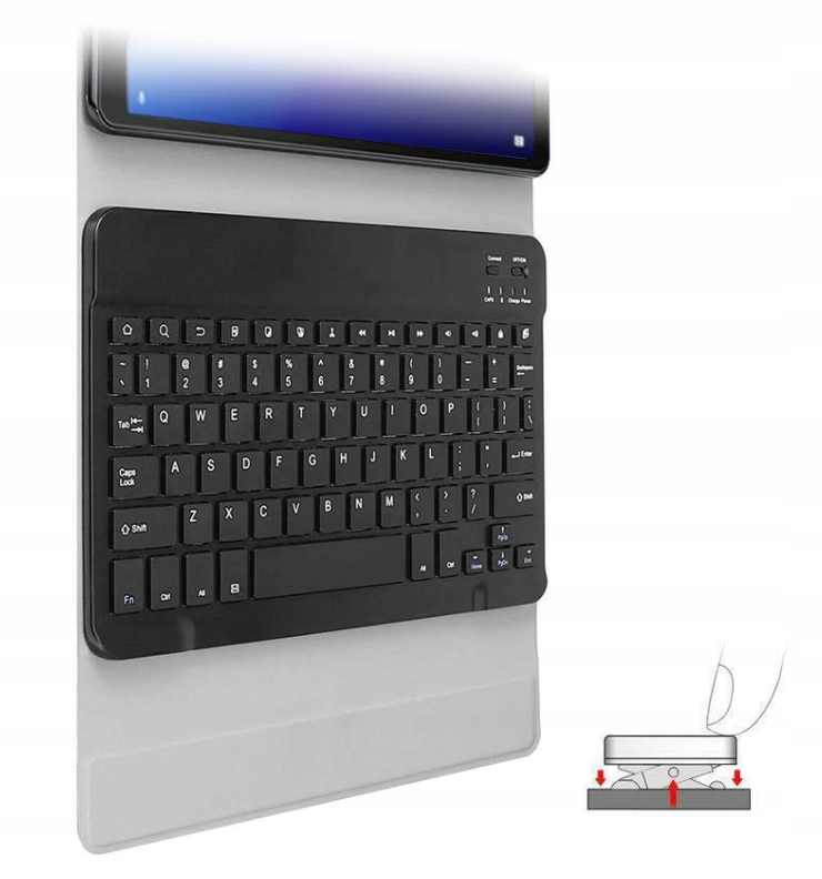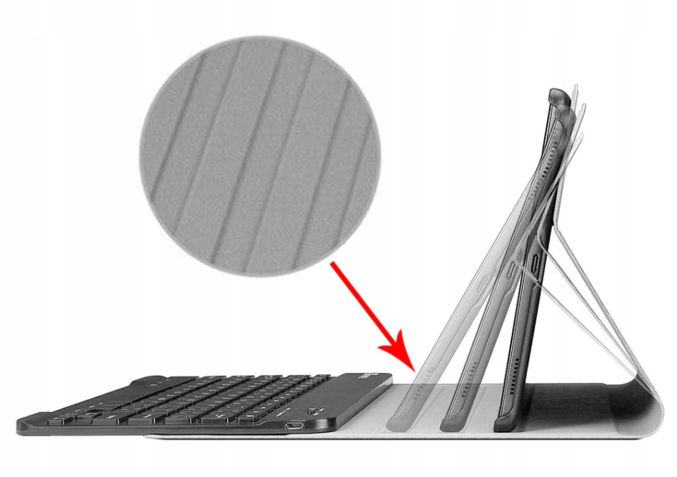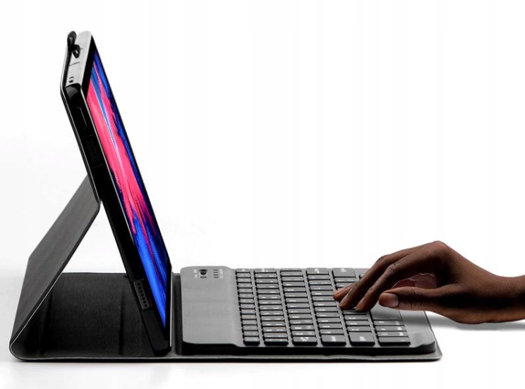 Carcasa are un magnet incorporat care conecteaza tastatura la carcasa. Puteti detasa oricand tastatura din carcasa si puteti lucra departe de tableta.