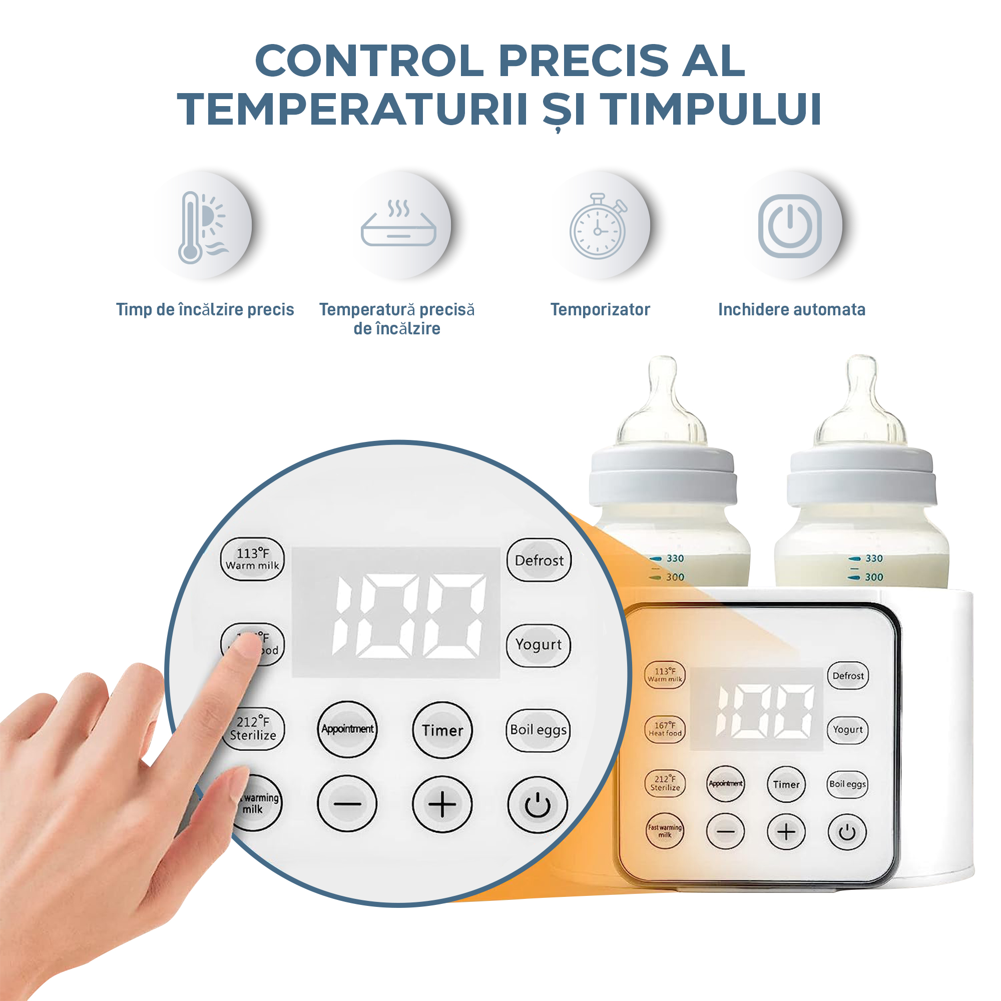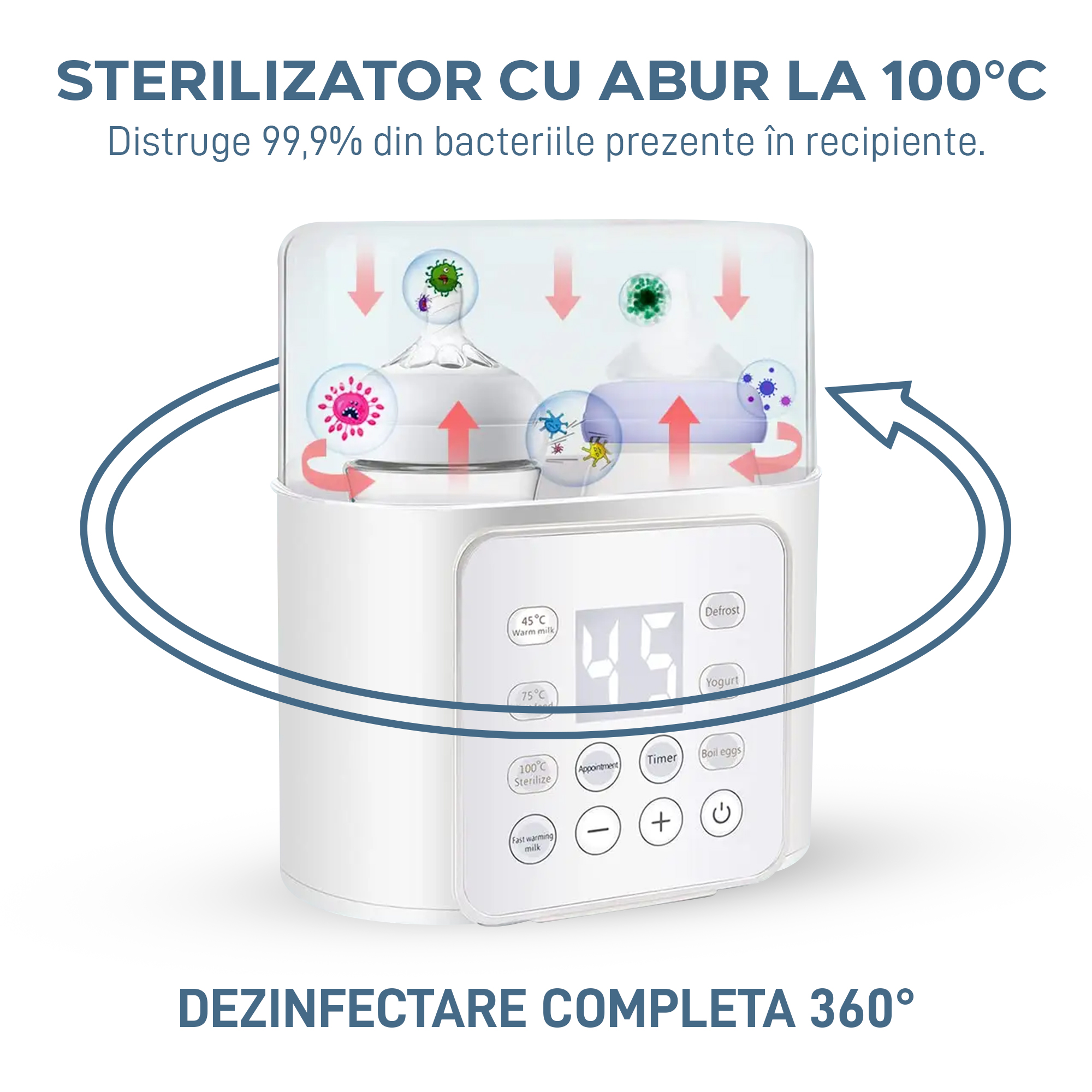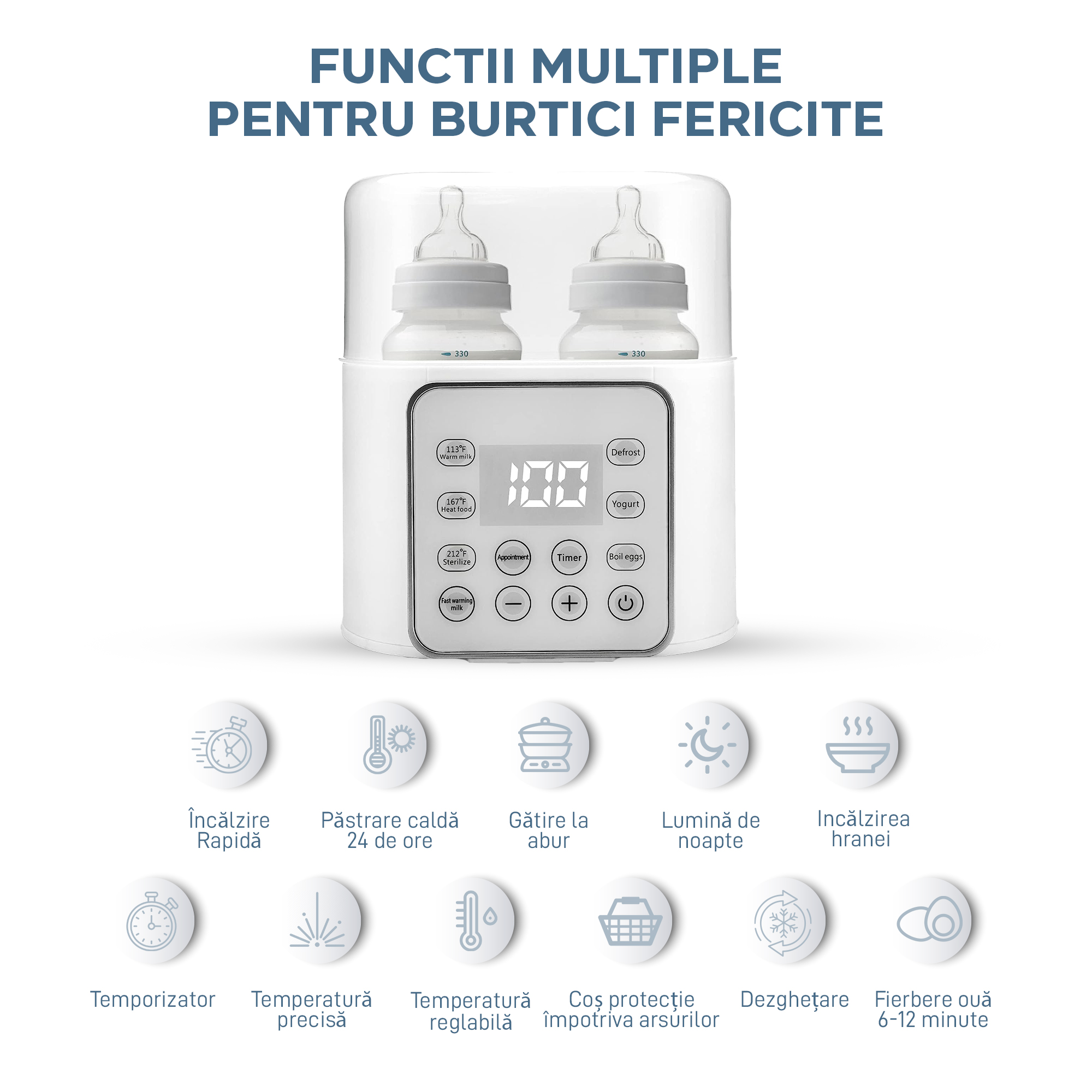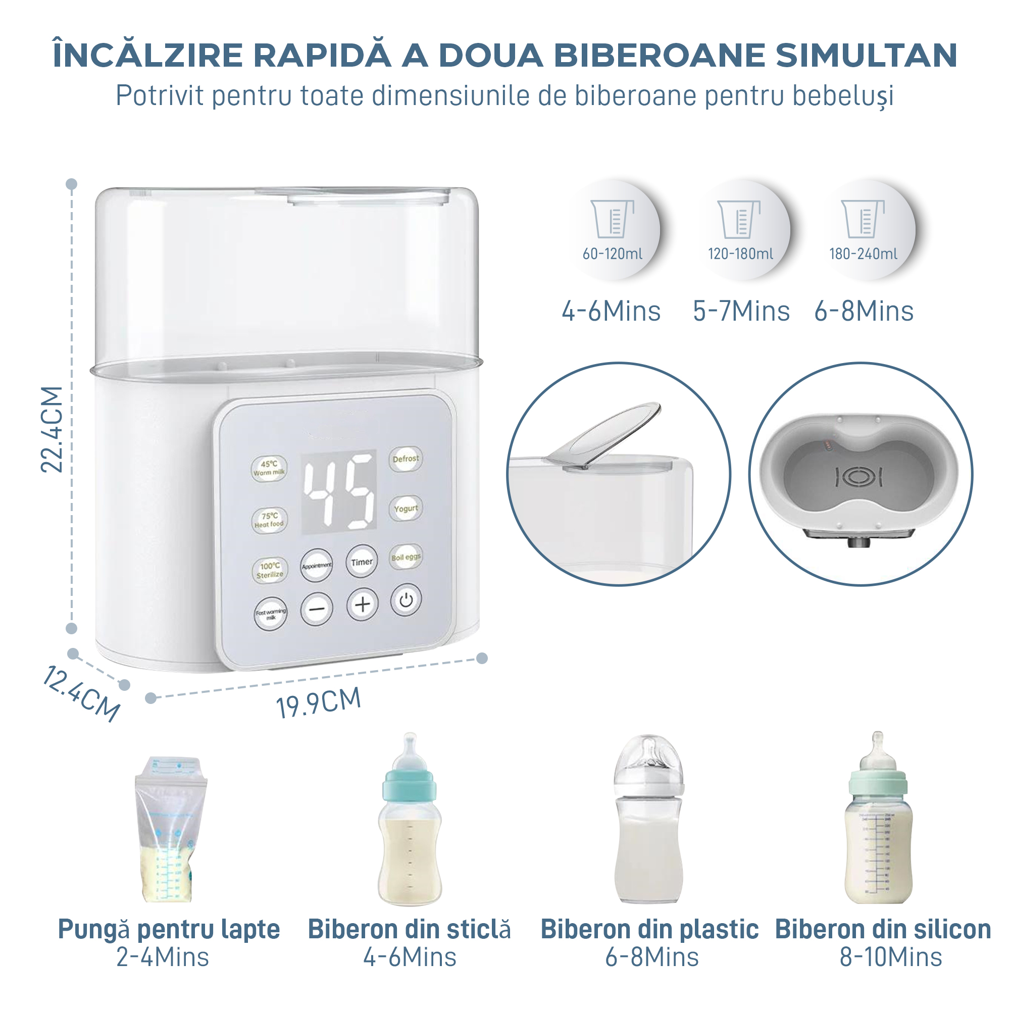 Incalzitor Biberoane, Sterilizator Multifunctional 12 in 1, Incalzire Rapida 2 Biberoane, Dezghetare, Preparare Lapte, Fierbere oua, Temperatura constanta 24H, Fara BPA, Afisaj LED, Alb