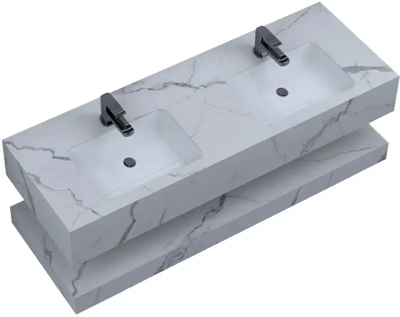 Set mobilier baie suspendat Galacatta Double, 4 piese, 150cm, alb, marmorat, mat